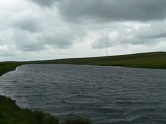 Dean Mills Reservoir with Winter Hill TV transmitter in the distance. | |