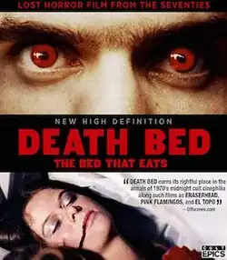 Death Bed: The Bed That Eats is a 1977 American surrealist folk horror film[3] written, produced, and directed by George Barry in his only feature film, and starring Demene Hall, William Russ, Julie Ritter, and Dave Marsh. The plot centers on a demon-possessed bed that is passed on through generations, bringing tragedy upon those who come across it.