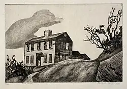 A 1928 etching by Howard Cook, of a home on Deer Island.