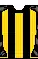 Deportivo Táchira's shirt has black and yellow vertical stripes, with black shorts and socks.