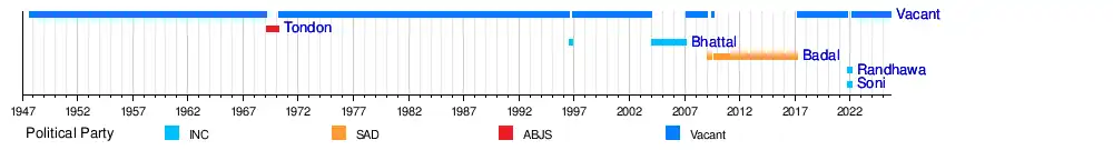 6 January 2004 | 1 March 2007 | 3 years, 54 days | Indian National Congress | Captain Amarinder Singh | O. P. Verma | [4] | |