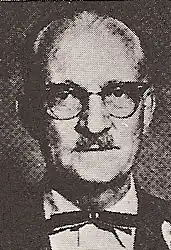 Desmond Lardner-Burke was born in Kimberley in the Cape of Good Hope on 17 October 1909, and was educated at St. Andrew's College, Grahamstown. Lardner-Burke became a lawyer.[1] He became a leading member of the Dominion Party,[2] and in 1957 was a founder member of the Southern Rhodesian Association, of which he soon became leader.[3] In 1962, this merged with Ian Smith's United Group and other organisations to found the Rhodesian Front,[4] of which he was a prominent member.[5] Lardner-Burke was a supporter of white supremacy, and claimed to support the views of Cecil Rhodes.[6] In 1971, he preached a sermon from the pulpit of the Cathedral of St Mary and All Saints, Salisbury, in which he claimed that Christ had never declared that everyone was equal, nor that everyone was entitled to equal treatment. He attempted to illustrate how Christian theology could be shown to support apartheid.[7]