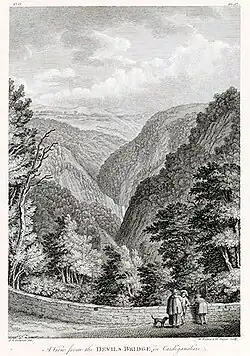 The artist J. M. W. Turner sketched the bridge; this work is at the Tate Gallery, London. He also produced two watercolours of the area in 1795. In 1824, William Wordsworth published a poem, To the Torrent at the Devil’s Bridge, North Wales.[12]