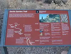 The trailhead for Devils Garden is located at the end of the main park road.[2] A campground and amphitheater are also available at the site.[8]