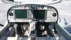 Both the avionics and principal flight controls of the DA42 have been designed to be user-friendly and to reduce pilot workload.[4] A Garmin G1000 glass cockpit serves as the centrepiece of the aircraft's integrated digital avionics, using a pair of large flat-panel monitors in place of conventional instrumentation and gauges; immediately above these monitors is a horizontal row of standby instruments present as a fail-safe.[18] The monitors display various information on the aircraft, along with navigational data and flight information; both screens can show identical basic information or be configured to flight data on the left monitor and navigation on the right.[4] According to Flight International, the displays are easy to read while features such as the moving map display were considered to be "useful".[4] The DA42 is also outfitted with a sophisticated three-axis Garmin-built GFC 700 autopilot and GWX 70 weather radar.[2][5]