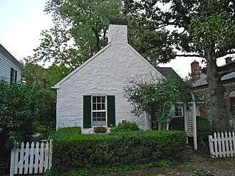 5107 Wetheredsville was built around 1810 and was, for many years, the home of the village lamplighter. The large home at 5101 Wetheredsville is the Mechanics Hall and was built in 1897 as a lodge for the Junior Order of American Mechanics, a union and fraternal organization. The building served as a village meeting hall, a concert hall for vaudeville and minstrel shows, and Madame Jolly's Waxworks, a show based on Madame Tussauds Waxworks in London before conversion to a private residence. A stage and footlights still grace one end of the main hall. Ashland Chapel, in the center of the village at 2331 Pickwick Road, was built on land given by the mill-owning Wethered family in 1849 as a house of worship for mill workers. The chapel, with its plain interior and lack of a slave gallery, became the Methodist Church. the small garden shed at one end of the property was originally a trolley stop. 5029 Wetheredsville (c. 1850) served as a home of the cow for the village dairy and a glove factory. 5027 Wetheredsville is more recent (built in the 1940s) but is known as "Little Mount Vernon" as it was designed to emulate that famous home.