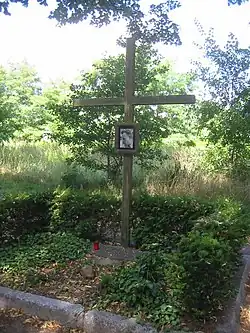 To commemorate Wohlfahrt a wooden cross was erected directly near the wall with a memorial plaque and a photo in Berlin-Spandau.