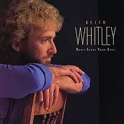 Don't Close Your Eyes is the second studio album by American country music artist Keith Whitley and the last to be released during his lifetime. The album was released on May 31, 1988, by RCA Records. After the success of his debut album, L.A. to Miami (1985), Whitley re-entered the studio and began recording a second album with producer Blake Mevis. After its completion, Whitley was unhappy with its production, and he convinced his label to shelve the recordings. Don't Close Your Eyes was subsequently recorded with producer Garth Fundis.[2][3] The album's liner notes credit Fundis and Whitley with production on all tracks except "Some Old Side Road" and "Would These Arms Be in Your Way", which are credited to Mevis.[4]