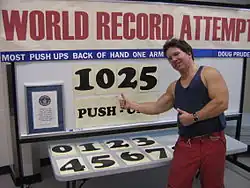 - ^ "Most push ups (one arm, using back of hand) in 1 hour". Guinness World Records. Retrieved 20 April 2020.
