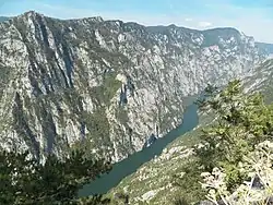 ![]() The Drina River forms Perućac Lake, Bosnia and Herzegovina looking from mountain Tara in Serbia | |
