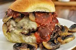 Dude food is a 21st century food trend largely consisting of heavy, meaty dishes that are thought to appeal to men or express masculinity. Dishes such as hamburgers, hot dogs, or barbecue ribs may also be considered dude food, though dude food versions of these dishes often distinguish themselves with exaggerated use of specific ingredients such as whiskey, barbecue sauce, bacon, or cheese.[1][2]