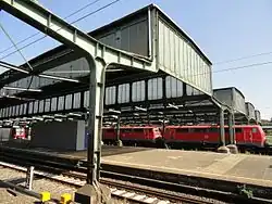 The station today has a rather drab feeling with the train shed in need of repair as there are quite a number of holes in the roof. Work to replace the roof and platforms commenced in August 2022, starting with tracks 12 and 13. This work is expected to take several years[4]