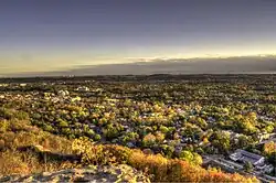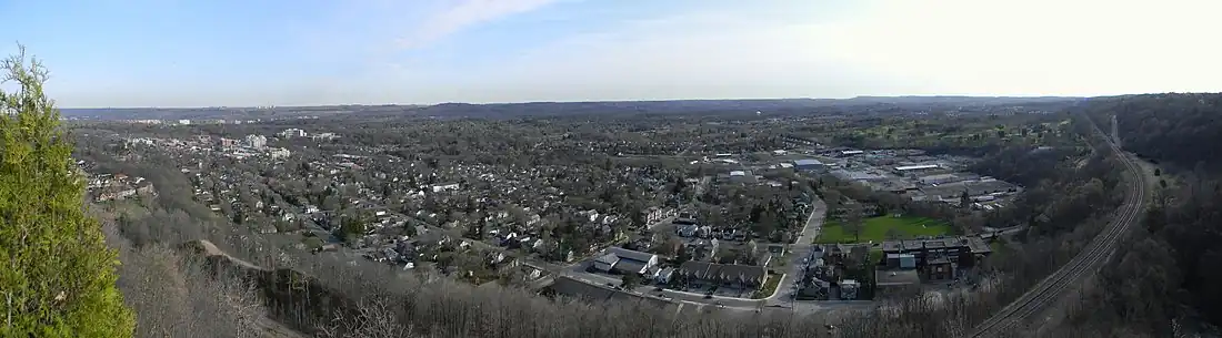 Dundas escarpment as seen from Dundas Peak, located in the abutting district of Flamborough