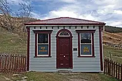 By Christmas, 14,000 prospectors were on the Tuapeka and Waipori fields.[5] Within a year, the region's population swelled greatly, growing by 400 per cent between 1861 and 1864,[5] with prospectors swarming from the dwindling Australian goldfields. Gabriel's Gully led to the discovery of further goldfields within Central Otago. A second gold strike in 1862, close to the modern town of Cromwell, did nothing to dissuade new hopefuls, and prospectors and miners staked claims from the Shotover River in the west through to Naseby in the north. In November 1862 Thomas Arthur and Harry Redfern sneaked off from shearing for William Rees at Queenstown and looked for gold on the banks of the Shotover River armed with a butcher's knife and pannikin. The Arthur's Point strike led to the largest rush that occurred in Otago.[6] Historic buildings at Queenstown such as Eichardt's Hotel, the Lake Lodge of Ophir (now Artbay Gallery), the Queenstown Police Station, and stone Courthouse were all begun as a response to the rapid influx. By the end of 1863, the real gold rush was over, but companies continued to mine the alluvial gold. The number of miners reached its maximum of 18,000 in February 1864.[7]