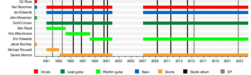 Earth Crisis is an American metallic hardcore band from Syracuse, New York, active from 1989 until 2001, reuniting in 2007. Since 1993, the band's longest-tenured members include vocalist Karl Buechner, lead guitarist Scott Crouse, bassist Ian Edwards, and drummer Dennis Merrick. Their third and current rhythm guitarist Erick Edwards joined the band in 1998.[3][4]