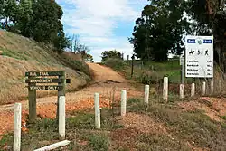 Continuing on from Partellis Crossing the trail continues for several kilometres through mixed forest and farmland, and then past the former timber mill site of Waygara. Native vegetation is reclaiming this site but some signs of the former mill are visible such as a shed, an incinerator stack, and former mill houses.[7] The former Waygara railway station was also in this location, however little sign remains of it. The trail again starts heading back towards the highway and soon crosses Simpsons Creek and then Simpsons Creek Rd[2] through more forested areas which preserve a significant amount of biological diversity from early and pre-European settlement times.[7]