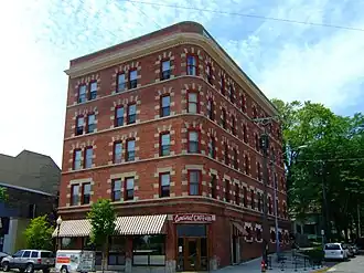 The East Wilson Street Historic District includes remnants of businesses that grew around two railroad depots a half mile east of the capitol in Madison, Wisconsin, starting in the 1860s. A cluster of the hotel and saloon buildings from this district are still fairly intact, in contrast to Madison's other railroad station on West Washington. In 1986 the district was listed on the National Register of Historic Places and the State Register of Historic Places in 1989.[2][3]