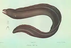 - ^ Christopher Scharpf & Kenneth J. Lazara (22 September 2018). "Order ANGUILLIFORMES: Families PROTANGUILLIDAE, SYNAPHOBRANCHIDAE, HETERENCHELYIDAE, MYROCONGRIDAE, MURAENIDAE, CHLOPSIDAE and DERICHTHYIDAE". The ETYFish Project Fish Name Etymology Database. Christopher Scharpf and Kenneth J. Lazara. Archived from the original on 18 November 2021. Retrieved 18 November 2021.