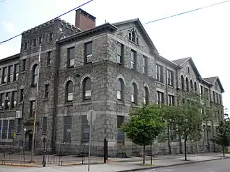 Edwin Fitler Academics Plus School is a historic school located in the Germantown neighborhood of Philadelphia, Pennsylvania. It is part of the School District of Philadelphia. The building was built in 1897–1898 and is a 3 1/2-story, schist building in the Gothic-style. It features a projecting battlement tower, round arched openings, and three projecting gables.[2]