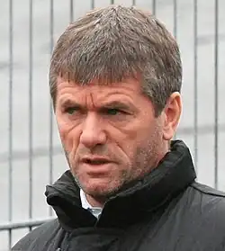 Dragoslav Stepanović took over as coach when Berger left, and Eintracht would finish 3rd in both seasons he coached, although he left before the end of 1992–93. Under Stepanović, Eintracht played what was considered some of the best football in Bundesliga history, making 'Stepi' a fan favourite to this day.[24] In 1991–92, the club came closer than ever before to winning the Bundesliga. Going into the last game of the season, Eintracht were top of the table and only needed a win against already-relegated Hansa Rostock. With the scores level at 1–1 Eintracht were denied what seemed a clear penalty, they would go on to lose 2–1. Referee Alfons Berg later apologised for his decision, but VfB Stuttgart became champions.[25] Eintracht also came close in 1993–94, under Klaus Toppmöller, leading the table at the halway point; however, they fell to 5th place and Toppmöller was sacked.