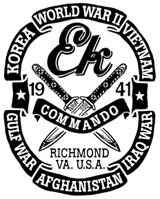 In 1982 Ek Knife President Robert Buerlein took the reins and convinced John's Son and his Mother to move the company to Richmond, VA, with the new company slogan of "Constant Improvement". New knives have been introduced, developed by Gary Ek including the Raider/MCMAP Knife, authorized by the U.S. Marine Raider Association.[5] Handles were made of finely grooved black Micarta and hand-checkered walnut handles were offered as an upgrade. Machined brass X-nut screws to fasten the handle became standard instead of the original poured lead rivets. Blades were ground out of stainless steel and were mirror polished. Ek knives produced lower cost models with a handle made entirely of green or black (and occasionally "desert camo") wrapped parachute cord and a heavy nylon-webbing sheath in a matching color. A number of variants, such as Ek bowie knives, hunting knives, throwing knives, boot knives and reproductions of other WW II patterns such as the Australian bowie and a copy of the Murphy-pattern combat knife were produced.[2] During the 1980s EK Commando knife blades were made by Hattori in Seki Japan but marked Richmond VA. But early and later ones were made in the United States.