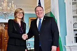 Zaharieva meets with U.S. Secretary of State Michael R. Pompeo at the U.S. Department of State in Washington, D.C., on November 5, 2018.