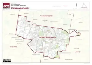 Toowoomba South is an electoral district of the Legislative Assembly in the Australian state of Queensland. It was created with the 1972 redistribution, and replaced the abolished Toowoomba East.[1]
