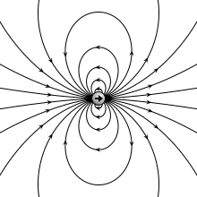 - ^ Many theorists predict elementary particles can have very tiny electric dipole moments, possibly without separated charge. Such small dipoles make no difference to everyday physics, and have not yet been observed (see Electron electric dipole moment). However, when making measurements at a distance much larger than the charge separation, the dipole gives a good approximation of the actual electric field. The dipole is represented by a vector from the negative charge towards the positive charge.