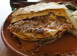 This dish is similar in form to a stacked enchilada, a dish common in New Mexico.