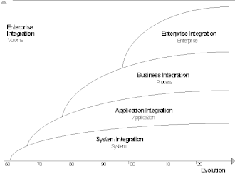 Evolution in Enterprise Integration: This figure summarizes these developments indicating the shift of emphasis from systems integration to enterprise integration with increasing focus on inter enterprise operations or networks.