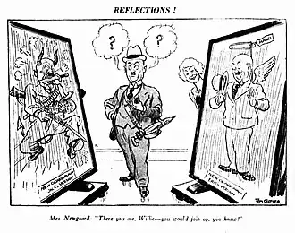 'Reflections!', a cartoon by Tom Glover, published in The Sun (Sydney), 12 May 1932.