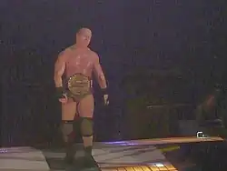 On the April 10 edition of Impact Wrestling, after winning a battle royal earlier in the night to become number-one contender, Young defeated Magnus to become TNA World Heavyweight Champion for the first time in his career.[123] The victory also makes Young the seventh Triple Crown Champion and the fourth Grand Slam Champion in TNA.[124] The following week, Young successfully made his first title defense against Abyss in a Monster's Ball match.[125] At Sacrifice, Young defeated Magnus in a rematch for the title.[126] Proclaiming himself a fighting champion, he successfully defended the TNA World Heavyweight Championship against Bobby Roode on the following Impact Wrestling.[127] On the May 8 episode of Impact Wrestling, Young and Roode agreed to have a rematch, but TNA Director of Operations MVP declined the match and promised Young that he would reveal his opponent at June's Slammiversary event. MVP revealed himself as the opponent, which was shown when he attacked the champion.[128] On May 15, Young challenged MVP to a match, which he agreed, but was disqualified when Kenny King attacked Young. Bobby Lashley pretended to help Young, but he speared him.[129] On June 5, Young, Bully Ray, Austin Aries and Samoa Joe defeated MVP, Kenny King, Bobby Lashley and Ethan Carter III in an eight-man tag team First Blood match. As Aries and Joe had been among MVP's harshest critics, they were put in matches against MVP associates King and Lashley respectively in singles matches at the PPV. MVP was later injured and not able to compete at the PPV, TNA announced on their website Friday before the PPV, that the match will now be a three-way cage match for the title, with the winners of Lashley vs. Samoa Joe and Austin Aries vs. Kenny King qualifying for the match. At Slammiversary XII, Young successfully defended his TNA World Heavyweight Championship against Lashley and Aries.[130] On the June 19 edition of Impact Wrestling, Young lost the title to Lashley.[131] On the July 3 episode of Impact Wrestling, Young had a rematch but failed to regain the title.[132]
