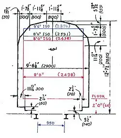 The structure gauge of the Eritrean Railway is small. Therefore, two test runs, one in 2006 another one in spring 2010 took place when ISO containers were carried on traditional flat wagons through all the tunnels along the line.[14] In December 2010 two ISO Containers of Maersk Line with equipment donated by the Danish State Railway for the rail workshops in Asmara travelled all the line with no problems.[15][16] It is not clear if the containers were 8 ft 6 in (2,591 mm) high or 9 ft 6 in (2,896 mm) high.