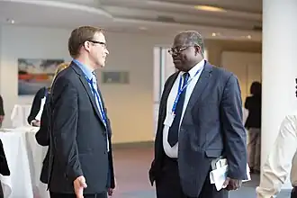 ![]() David M. Malone (left) shaking hands with Ernest Aryeetey (right) | |