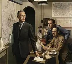 Throughout the 1930s Gowers and his colleagues had also been involved in preparing for possible war, and invasion. From 1935 onwards he combined his frustrating work with the coal industry with civil defence planning, attached to the Department for the Co-ordination of Defence. John Anderson was given control of civil defence planning in 1938 and set up a network of civil defence regions.[18] Euan Wallace MP was appointed head of London Region, but ill-health forced him to retire in 1940.[19] Gowers, his deputy, became Senior Regional Commissioner for Civil Defence in London, running civil defence through the Blitz from a concrete bunker underneath the Natural History Museum, with Harold Scott and Edward "Teddy" Evans as his deputies.[20]
