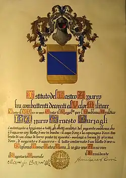 In February 1918, he was awarded the Military Order of Savoy.[1] In 1919 he was decorated with the Navy Cross by the United States Navy for his service to the Allied cause during the World War.