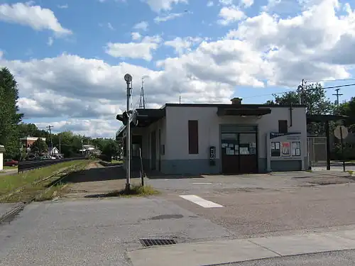 Essex Junction station, also known as Essex Junction–Burlington, is an Amtrak train station in the city of Essex Junction, Vermont, United States. The station was originally built by the Vermont Central Railway in 1859 and replaced in 1959.[5] It serves Amtrak's Vermonter train, which runs from St. Albans, near the Canada–U.S. border, south to Washington, D.C. Prior to bridge trouble at Alburgh, north of St. Albans, train service continued to Montreal. Until the early 1960s, the Boston and Maine railroad operated Montreal to Boston service on The Ambassador through the station.