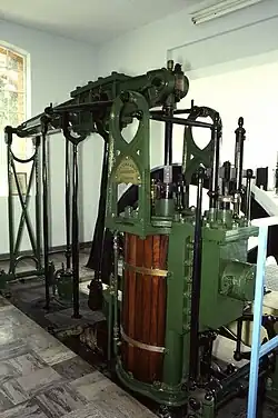Public water supply in Lowestoft also began in 1853, with the creation of the Lowestoft Water, Gas and Market Company by the Lowestoft Water, Gas and Market Act 1853 (16 & 17 Vict. c. xviii). They retained this name until 1897, when they became the Lowestoft Water and Gas Company via the passing of the Lowestoft Water and Gas Act 1897 (60 & 61 Vict. c. cx).[21] The company had an authorised capital of £25,000, and bought the gas works for £5,000. Water was supplied to a tower at Kirkley from a well at Middle West Field,[22] and subsequently from a lake at Bunkers Hill, Lound. From there it was pumped through a 5-mile (8.0 km) pipeline to a covered reservoir located to the north of the town.[23] The pumping station at Lound was probably designed by Thomas Hawksley in 1857, and contained two grasshopper beam engines supplied by Easton and Amos, both of which are preserved in situ, although no longer used for pumping water. They were succeeded by two Ruston & Hornsby 4-cylinder pumps in 1929, which are still used occasionally in emergencies.[24]