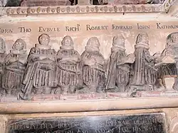Memorial to John Thelwall (grandson of John who d. 1580), St Meugan's Church, Llanrhudd.
