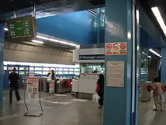 SPH Media Trust's The New Paper was distributed at most stations every weekday morning and Saturdays from 1 December 2016 to 10 December 2021.[3][4] Wireless@SG, Singapore's free Wi-Fi network, has been deployed at all station platforms.[5][6] Buskers were deployed to various crowded MRT stations in order to ease overcrowding on the MRT, which has been started at City Hall and Raffles Place during the mornings.[7] Escalator announcements were also put up in Simei and Tanjong Pagar, and charging points were put up at City Hall and Kent Ridge.[8]