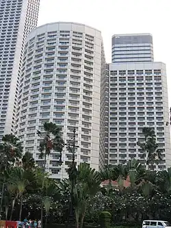 The Westin Plaza opened in October 1986,[1] as part of the Raffles City complex, which also included a shopping mall, a convention center, an office tower and an adjoining sister hotel, The Westin Stamford. At the conclusion of Westin's 15-year management contract with Raffles Holdings,[2] the hotels were both renamed on 1 January 2002, with The Westin Plaza becoming Raffles The Plaza and The Westin Stamford becoming Swissôtel The Stamford.[3] Raffles The Plaza was renamed again on 12 December 2007, becoming the Fairmont Singapore.[4] In September 2019, Fairmont Singapore completed a renovation of the South Tower.[5]