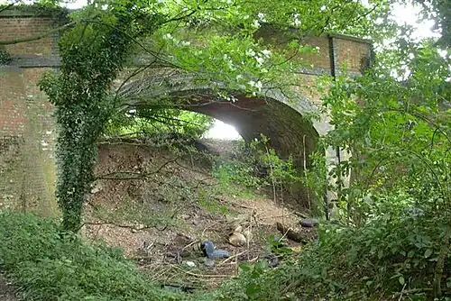 ![]() Woodside Lane overbridge, north of the station site | |||||