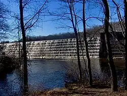 Farrington Lake is a scenic freshwater reservoir in Middlesex County, New Jersey near Milltown, New Jersey. Created by a dam on the Lawrence Brook, a tributary of the Raritan River, the lake is in fact a widened section of the Lawrence Brook. Its main tributaries are the Ireland Brook, the Beaverdam Brook, and the Oakeys Brook.