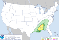 Early on February 3, a tornado watch was issued by the Storm Prediction Center (SPC) for portions of Alabama and Mississippi.[20] Additional flood watches were issued for portions of Alabama, Kentucky, Tennessee, and Georgia.[21] The Texas Department of Transportation (TxDot) stated that crews will work on bridges and roads in response to the storm.[22] On February 1, the University of Oklahoma closed campus for February 2–3.[23] On February 3, the San Antonio Spurs modified their tip off time against the Miami Heat from 7:30 pm to 6 pm, due to the impacts from the winter storm.[24]