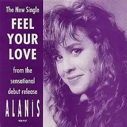 "Feel Your Love" is a pop-dance and new jack swing song co-written by Alanis Morissette and Leslie Howe, and produced by Howe for Morissette's debut album, Alanis (1991). Its protagonist tells a boy she has "got this thing" for him, and that "it's drivin' me right out of my mind ... I wanna feel your love; you know this waitin' for you boy I can't stand". Morissette's brothers Chad and Wade provided some of the song's backing vocals. It was released as the album's third and final single in 1991 (see 1991 in music) and was the second commercial single release after "Too Hot". The single charted at number 24 in Canada.