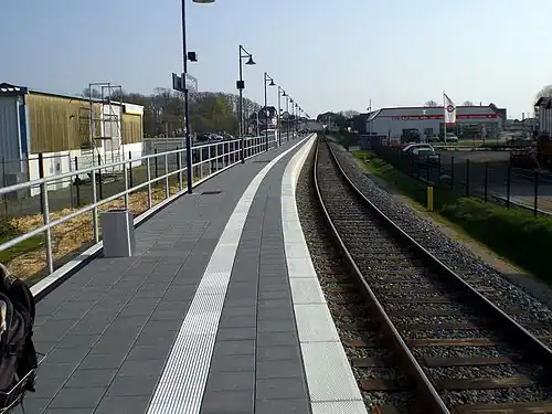 Beginning August 31, 2022, all rail traffic between Neustadt and Puttgarden, including at Fehmarn-Burg station, is suspended due to construction work on the double-track railway line connecting to the Fehmarn Belt Fixed Link.[3][4] The traffic is replaced by a bus service. It is expected that regional trains will go to Fehmarn-Burg again when the railway is rebuilt and in traffic again, around 2029, then as end point of the line.