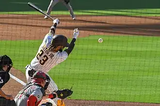 In the 2020 season, Tatís was part of a four-game streak in August in which the San Diego Padres hit four grand slams, and, notably, was at each base position over the four.[26] There was a controversy involving Tatís when he swung at a 3–0 pitch in the eighth inning, hitting an opposite-field grand slam against the Texas Rangers. This caused some discussion at the time regarding breaking an "unwritten rule of baseball" since the Padres were already up by seven runs.[27]