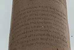 About five hundred years later, the script (Brahmi) was deciphered by James Prinsep in 1837 with help from scripts discovered on other pillars and tablets in South Asia.[2]