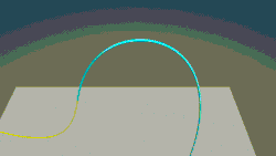 Floating bodies typically undergo significant rigid body motions when subjected to ocean waves, so the numerical solver must also cater for arbitrarily large and non-linear displacements and rotations in three dimensions. This is a key aspect of the structural model which is necessary to ensure accurate modelling of the restoring forces such as effective tension and bending moment. The solver uses a convected coordinate technique to cater for large three-dimensional displacements and rotations.[2] Each element of the finite element discretisation has a local axis system associated with it, which moves with the element as it moves in space and time. The internal and external virtual work statements are written in the convected system, and deformations along the element relative to this system are assumed to be moderate.
