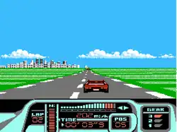 The names of the opponents are chosen partially at random; they can also vary because of the ranking level of the course and the type of vehicle used. Like in Rad Racer, the player can supercharge an automobile to go up to 255 miles per hour or 410 kilometres per hour.